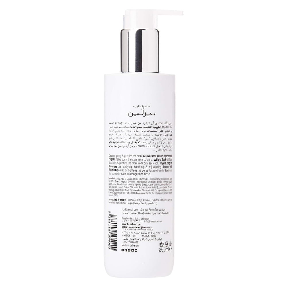 Beesline Propolis Facial Wash est un gel moussant doux qui nettoie en profondeur la peau, réduisant les sécrétions grasses et les éruptions cutanées grâce aux puissantes propriétés antimicrobiennes, purifiantes et apaisantes de la propolis.