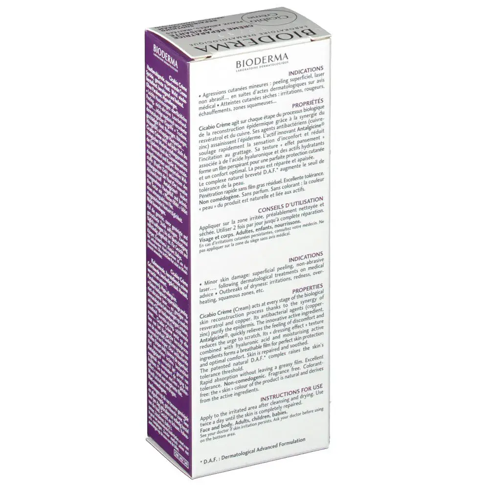 Cicabio crème cicatrisante Cicabio Crème agit sur chaque étape de la reconstruction épidermique pour favoriser une parfaite réparation. La texture « pansement respirant » de Cicabio Crème et son complexe antibactérien protègent la blessure.