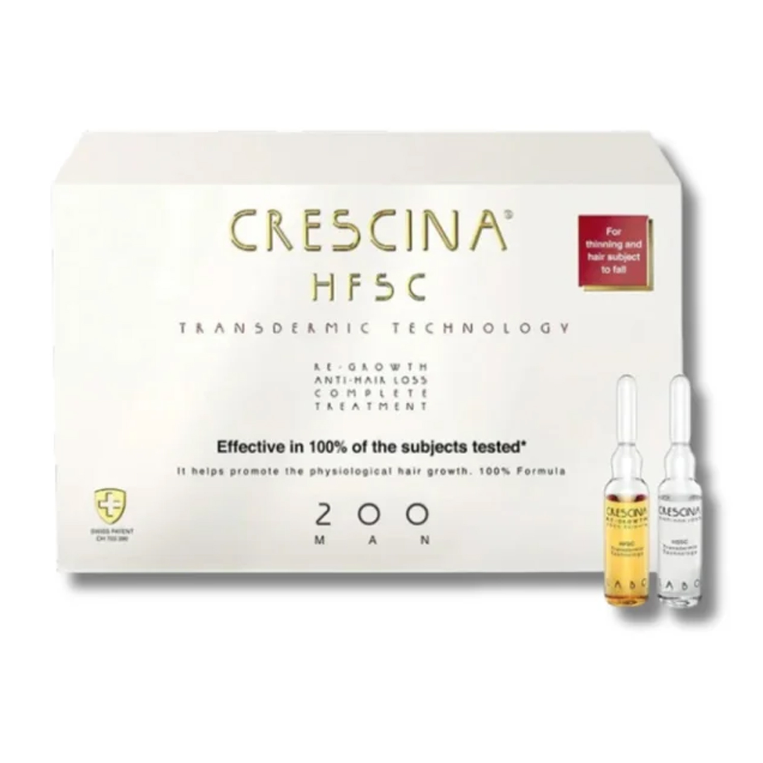 Crescina HFSC Homme 200 est un traitement en ampoules spécialement formulé pour les hommes souffrant de chute de cheveux. Il freine la chute et stimule la repousse dans les zones clairsemées tout en respectant le cuir chevelu.