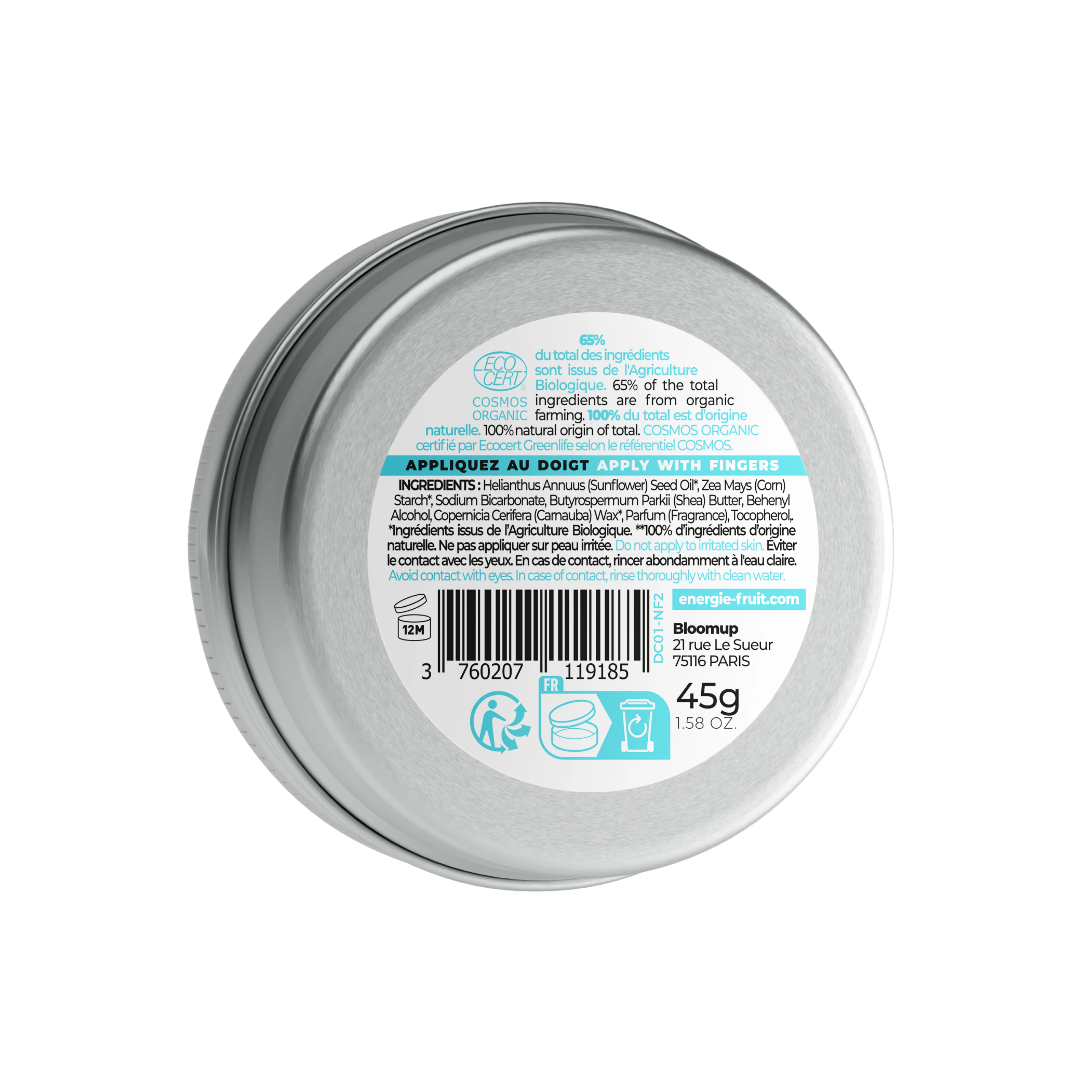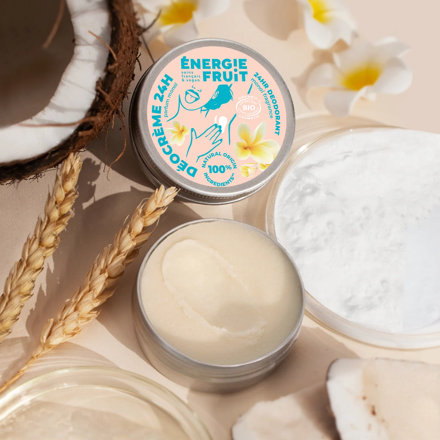 Energie Fruit Déocrème 48H Parfum Monoï Bio 45 g est un déodorant crème zéro déchet infusé au doux parfum de monoï, qui laissera les aisselles fraîches et hydratées jusqu’à 48h.