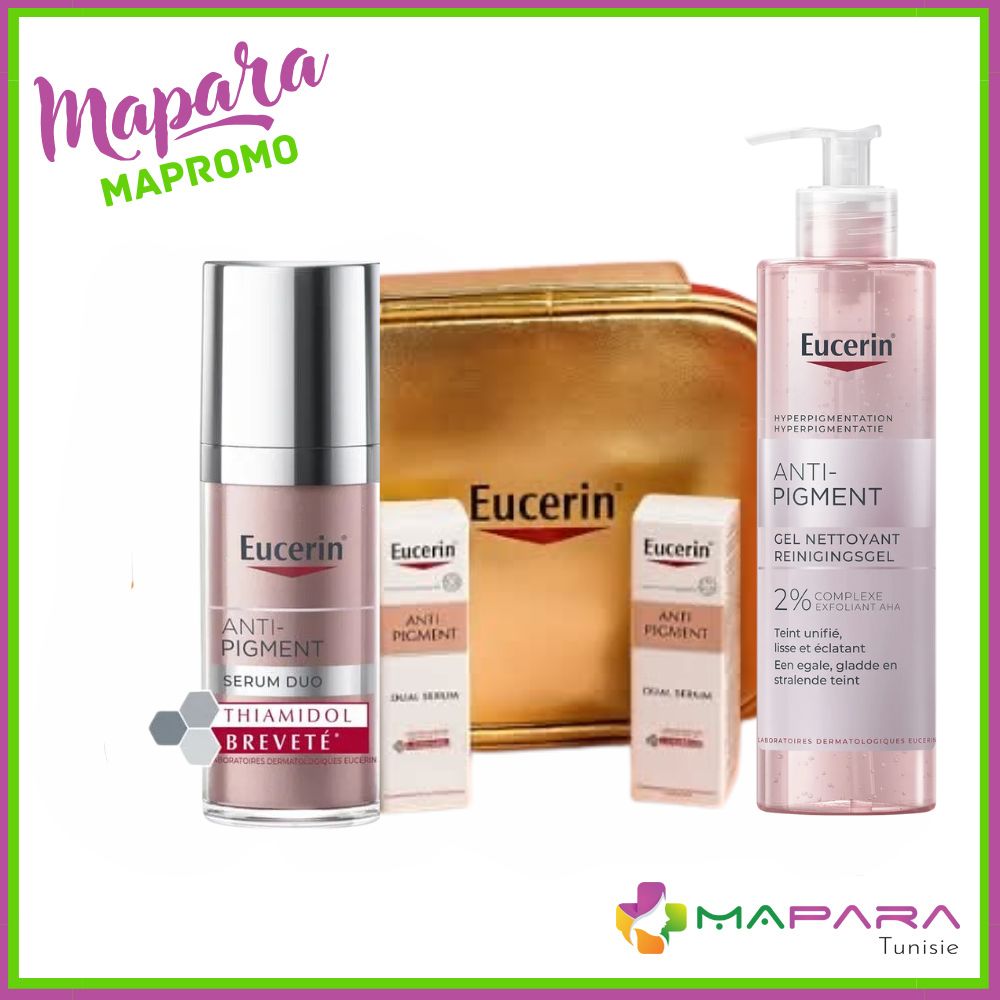 Eucerin Coffret Anti-pigment Gel Nettoyant 200ml + Sérum Duo 30ml + 2 Mini 7ml + Trousse