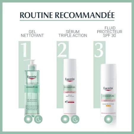 Avec le Sérum Triple Action DermoPure Eucerin, votre peau est purifiée et nette.