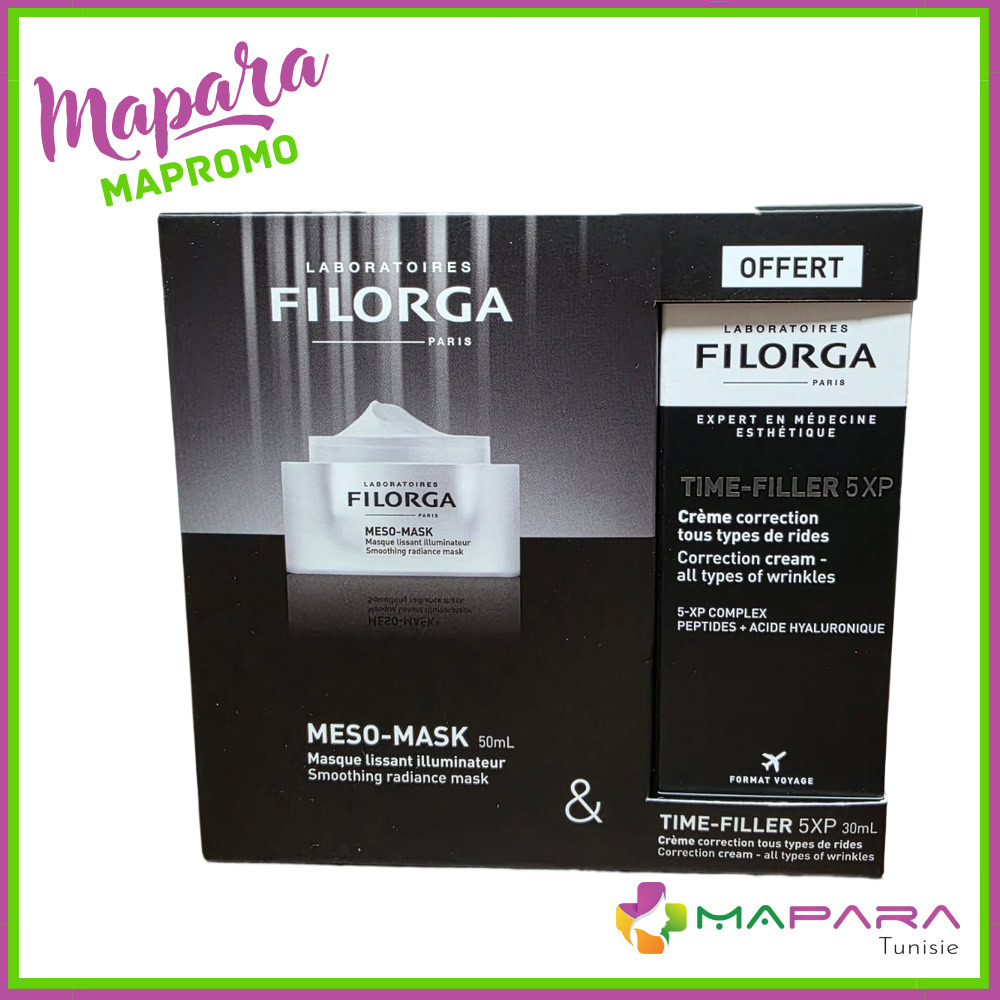 Filorga Time‑Filler 5XP Crème 30ml (offerte) : Crème anti‑rides best‑seller qui agit simultanément sur 5 types de rides (d’expression, profondes, de surface, de déshydratation et du cou) grâce à un complexe 5XP inspiré de 5 techniques de médecine esthétique (botulique‑like, fillers, peelings, mésothérapie, lifting). Elle lisse visiblement les traits, défroisse la peau, améliore la fermeté et la qualité de la surface cutanée, pour un visage plus jeune et reposé jour après jour.