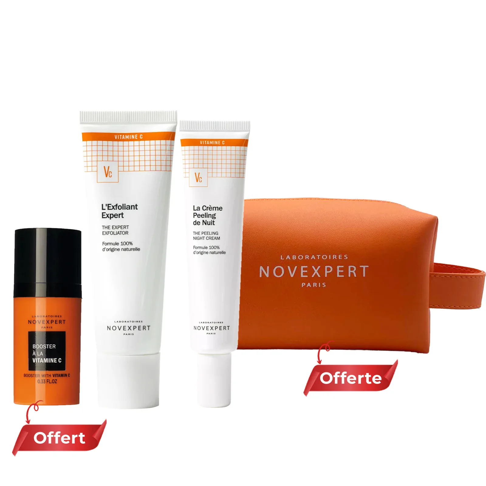 Ce coffret Novexpert associe peeling nocturne, exfoliation experte et boost d’énergie pour une peau plus lumineuse, lisse et éclatante !