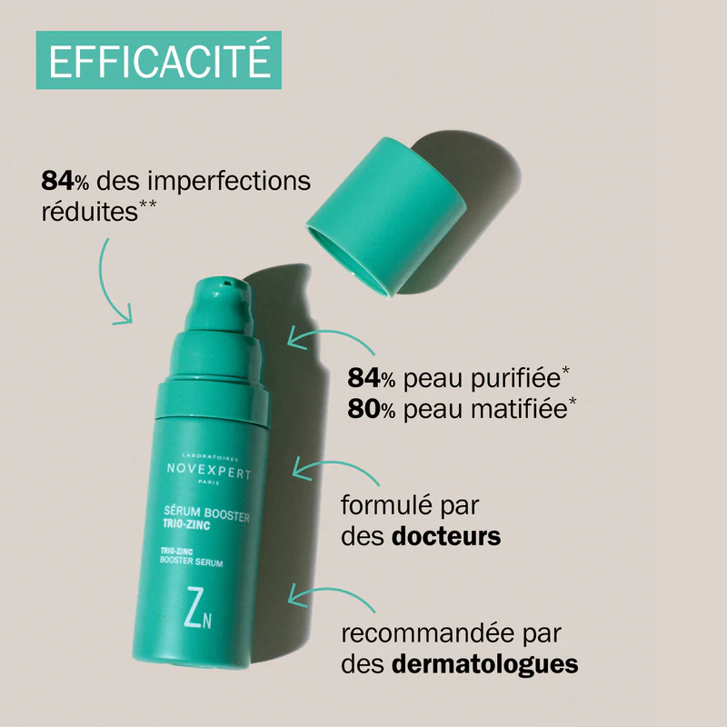 Le Sérum Booster Trio-Zinc des Laboratoires Novexpert est un soin innovant qui cible toutes les formes d’imperfections.