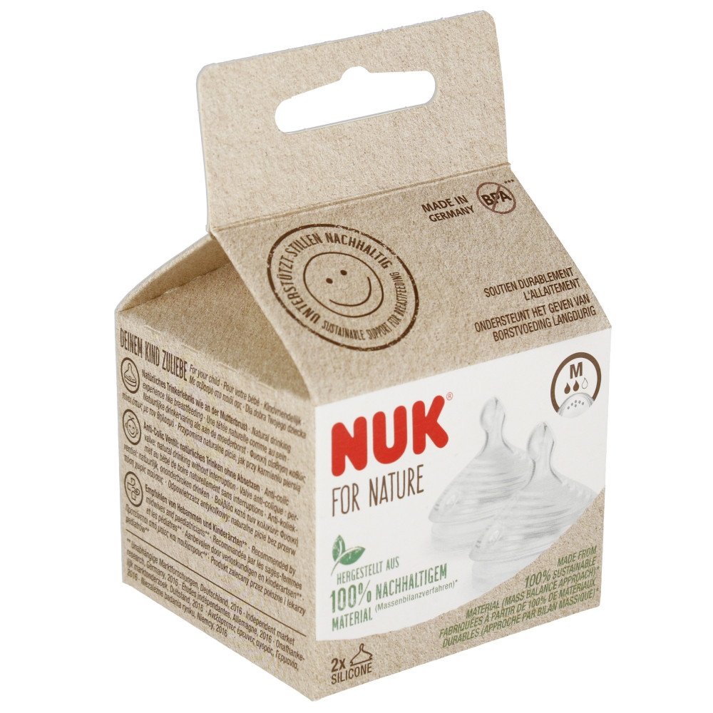NUK For Nature 2 Tétines Silicone – Taille : M sont des tétines qui soutiennent durablement l’allaitement, lors du passage de l’allaitement maternel à l’allaitement au biberon.