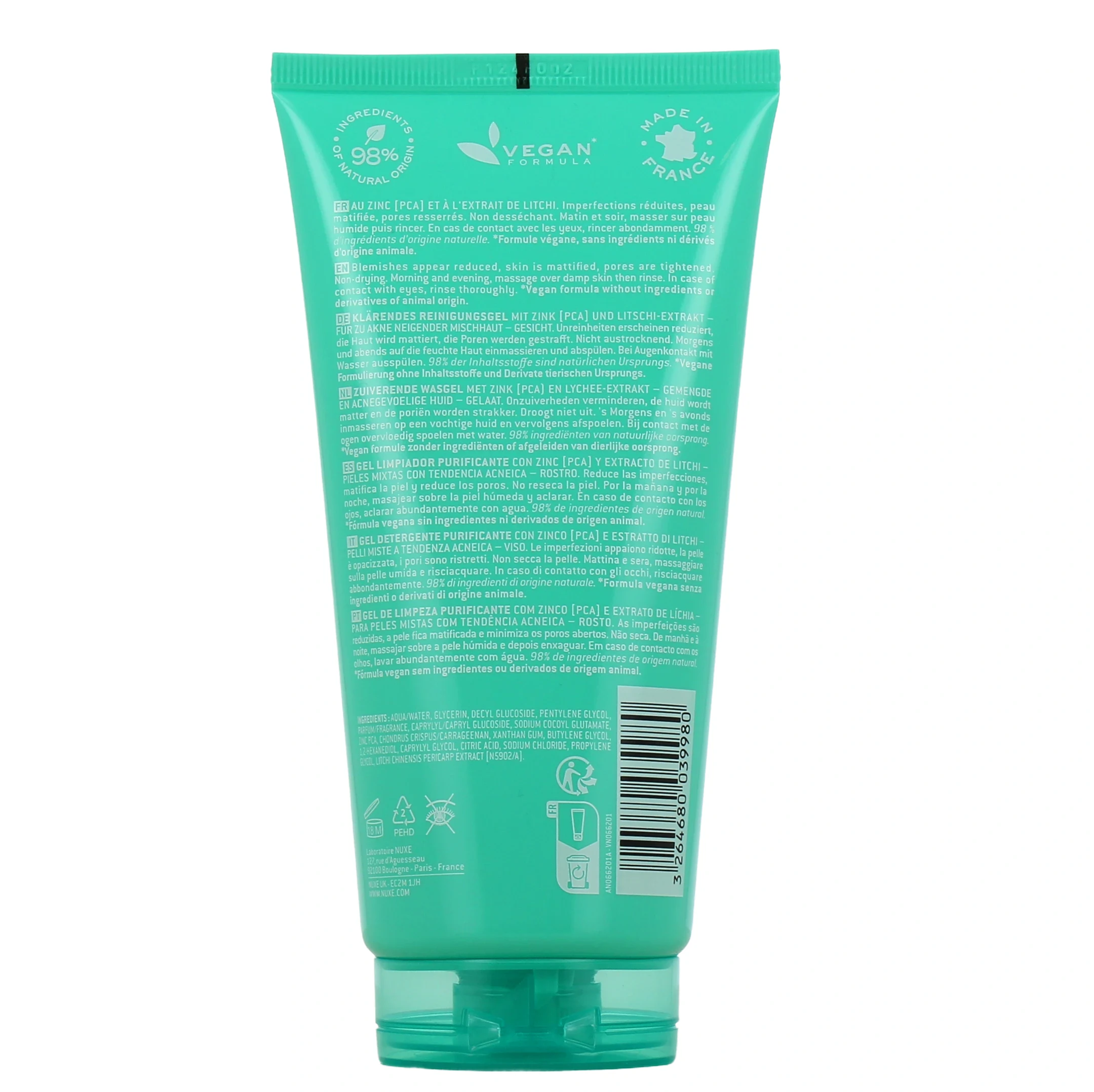 Nuxe Zinc Power Gelée Nettoyante Purifiante 150 ml est un soin qui purifie, corrige et matifie la peau.