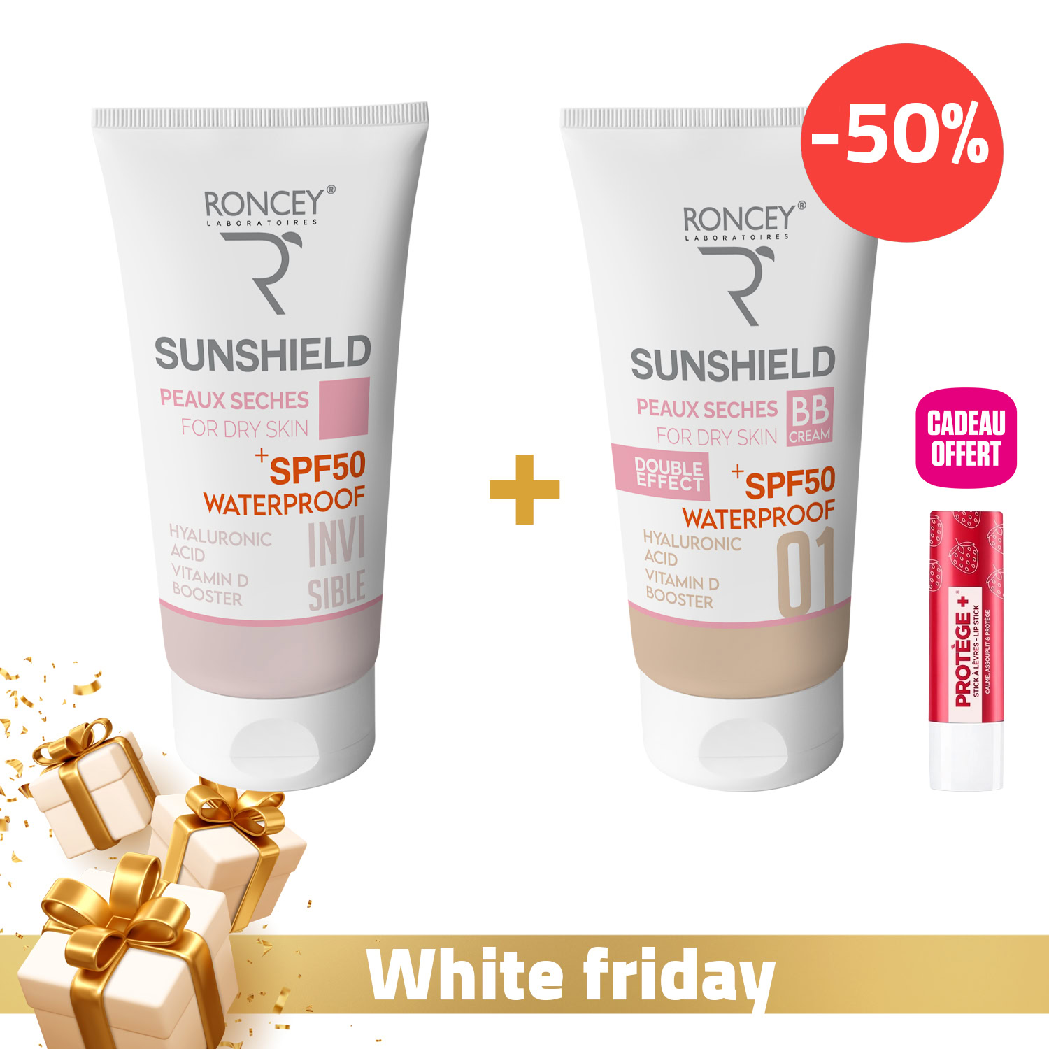 🌸 Roncey Ecran Sunshield Waterproof Peau Sèche SPF50+ Teinte 01 – 50ml (-50%)