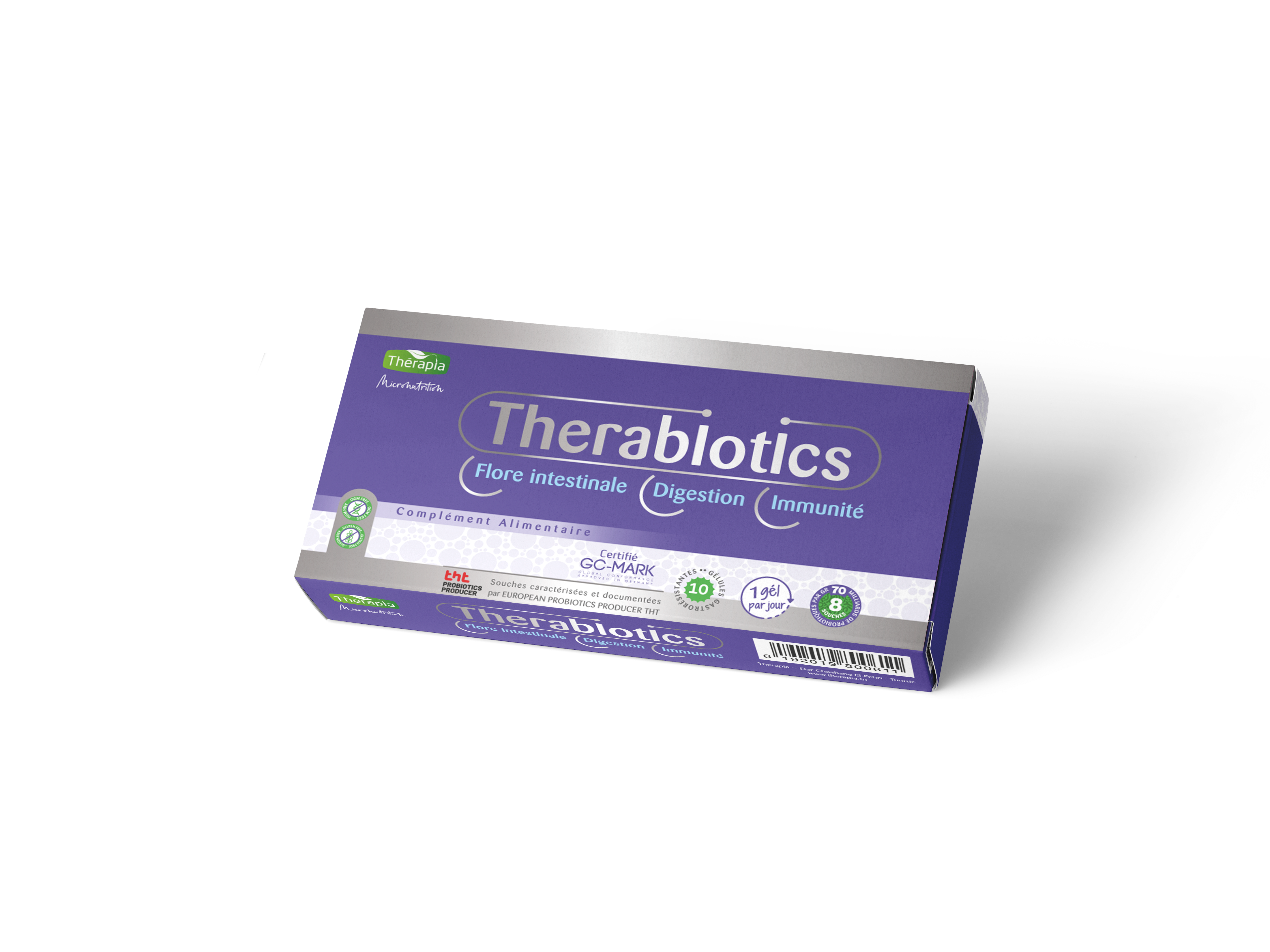 Therabiotics participe à l’équilibre de la flore intestinale en cas de dysbiose. Il améliore la fonction digestive en cas de diarrhées, constipation, de digestion difficile et le syndrome de l’intestin irritable. Il contribue au fonctionnement normal du système immunitaire.